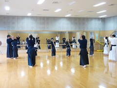 剣道は屋外スポーツの野球やサッカーと違い屋内スポーツ(武道)です。普段の稽古は、面、小手、胴の打ち込み基本稽古と木刀による剣道基本技稽古法です。